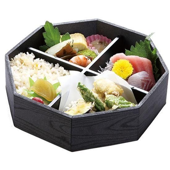 焼八寸・お造り・天麩羅と季節のご飯と彩り豊かなお弁当です。